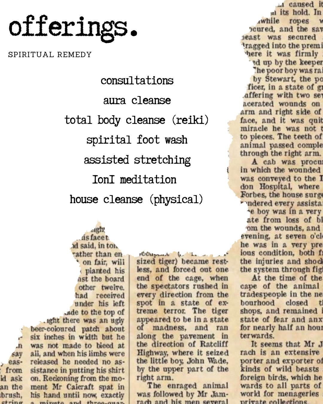 This section is for the spiritual offerings. These offerings are considered “ House Calls “ because, for one, your body is your house - and two, your physical hOuse may need TLC as well.